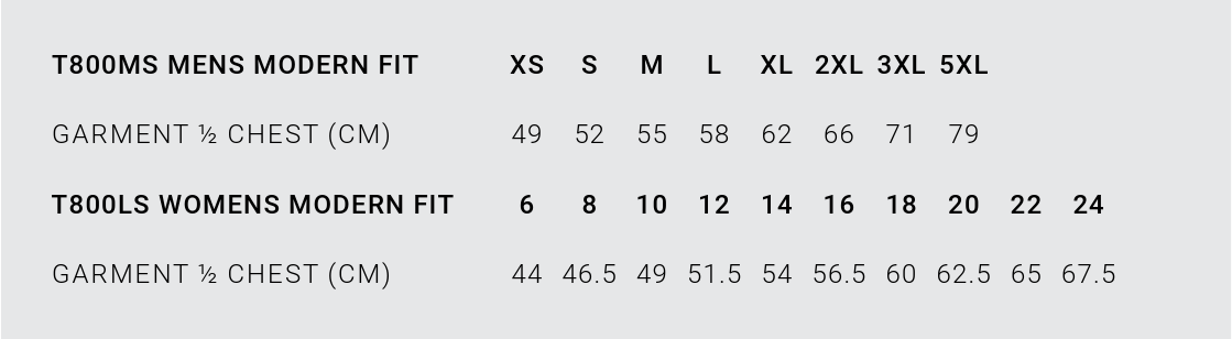 (Half Chest cm) 53.5 56 58.5 61 63.5 66 68.5 71 76